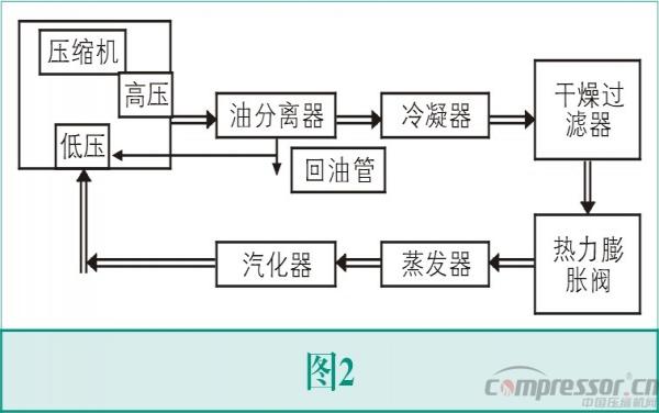 图2为冷冻油在冷媒系统内流动的管线示意图。