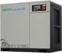 从节能角度讲,改变转子转速调节是最有效的。为此,人们想到了变频电机,当然它比固定转速的其他调节方法要节能。但是,由于通常的变频电机在转速下降时,会引起电机功率因素和效率的下降,根据测试它比传统螺杆空压机在相同的功率下产气量会下降10%~15%。因此,它还不是最理想的驱动机。而且,通常的电机还不能频繁地启、停。在此,螺杆空压机要消耗25%~30%的空载功率。