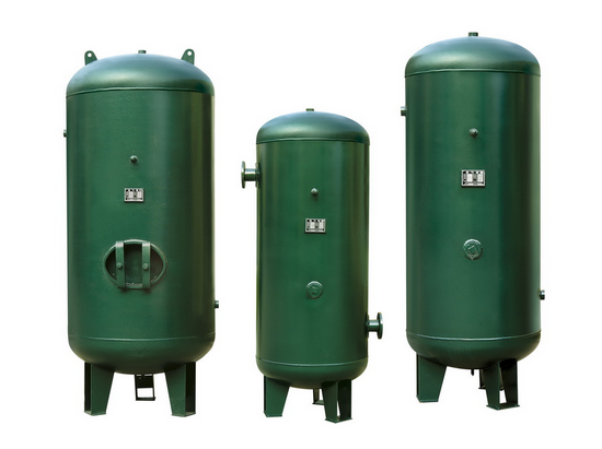 储气罐用来储存压缩空气;消除压力波动,缓冲压力,保证输出气流的连续性,因压缩机排出空气的压力有一定波动,加装储气罐后,能使用气端的压缩空气压力更稳定;调节用气量或以备发生故障和临时需要应急使用;进一步分离压缩空气中的水分和油分,空气中部分水蒸汽经压缩机压缩后已形成液态的水滴,这些水滴经过储气罐时大部分会沉积在储气罐底部,储气罐底部有一个排污阀,可通过手动或自动排出。